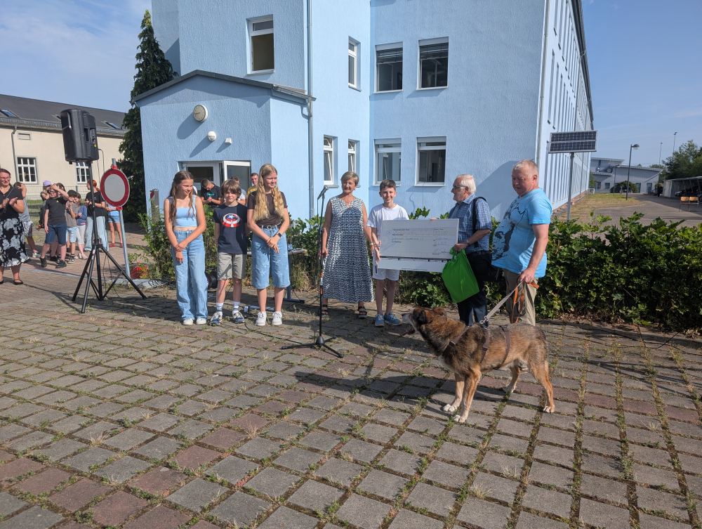 Außerdem übergaben Schüler der Klasse 7b einen Scheck von über 400 Euro an den Tierschutzverein Großenhain - dieses Geld hat die Klasse in den letzten Wochen an der Schule für dieses Projekt gesammelt.