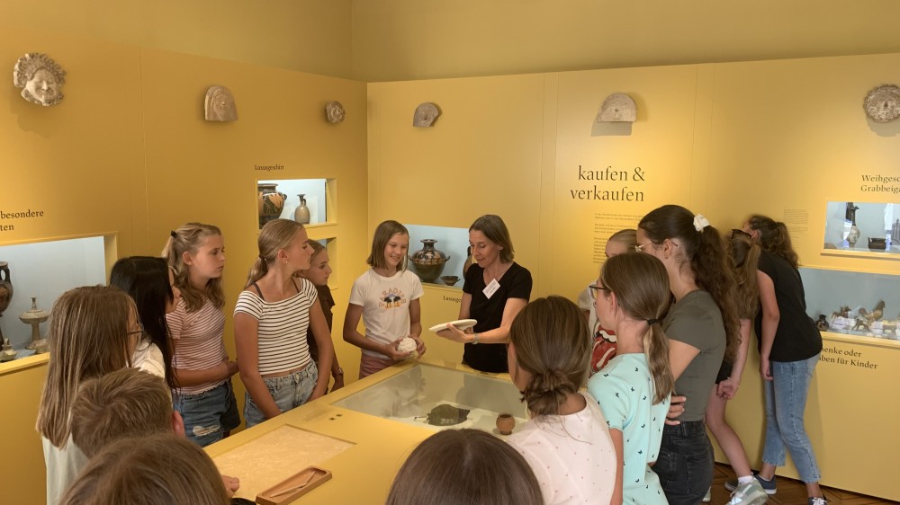 Mit einem bequemen Reisebus fuhren wie am 22.August ungefähr 10 Stunden in die Jugendherberge Lörrach. Am Freitag unternahmen wir einen Tagesausflug nach Basel, ein Stadtrundgang führte auch ins Münster. Im Antikenmuseum erlebte eine Gruppe den Workshop „Gipsabguss“, die andere Gruppe nahm an der Führung „Griechen und Römer“ teil. Am Nachmittag besuchten wir das Historische Museum und nahmen am Workshop „Fantasy der Vergangenheit“ teil. Wegen der sommerlichen Temperaturen kühlten wir uns auf der Rückfahrt zur Jugendherberge noch im Parkschwimmbad ab.