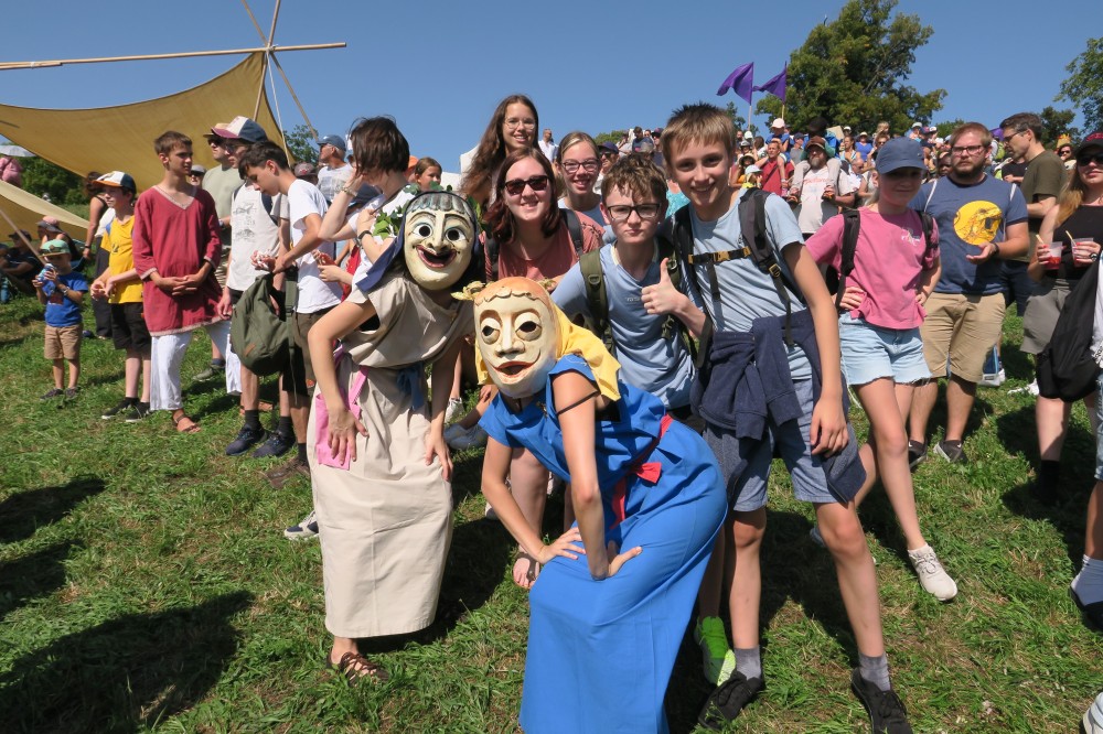 Nach einem zeitigen Frühstück fuhren wir am Samstag zum Römerfest nach „Augusta Raurica“, der „Stadt des Augustus im Land der Rauriker“. Auf dem Gebiet der 44 v.Chr. gegründeten Stadt findet alljährlich das Römerfest mit Darstellern, Musikern, Tänzern aus der Schweiz, Italien und Frankreich statt. Das Leben der Legionäre und Gladiatoren im alten Rom und den Provinzen wurde nachgestellt. Es gab Handwerks- und Spielstände, wo wir selber viel ausprobieren konnten. So fertigten einige von uns Anstecknadeln an und probierten sich im Töpfern, Tuchfärben, Brotbacken oder Armbänderflechten. Zudem gab es noch Glasbläser, einen Schmied und einen Seiler. Die Audienz beim Kaiser durfte auch nicht fehlen. Für Speis und Trank sorgten Holzöfen und offene Feuer für Gegartes, wie Spanferkel, Flammbrot und Bratwürste. Im Theater erlebten wir bei 33 Grad eine Pompa und bewunderten die Tänzerinnen.