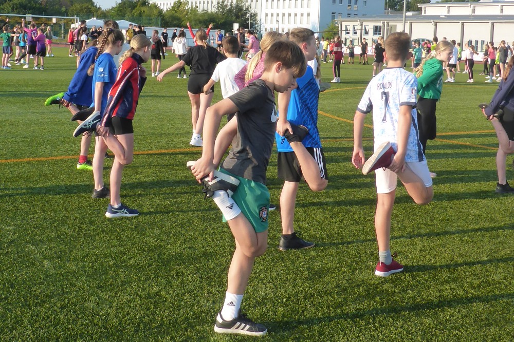 Klassenstufe 9: Im Volleyball zeigte die Klasse 9d ihre Stärke und gewann mit drei Siegen, gefolgt von 9b, 9a und 9c. Im Fußball hingegen tauschten die Klassen teilweise ihre Positionen – hier setzte sich 9d ebenfalls durch, während 9a ohne Sieg blieb. Im „Zweifelderball“ errang die Klasse 9b den ersten Platz, 9d belegte Rang zwei. Entscheidenden Einfluss auf die Gesamtwertung hatte auch hier der Staffellauf. Mit einer Bestzeit von 1:59,53 Minuten siegte erneut die Klasse 9d.