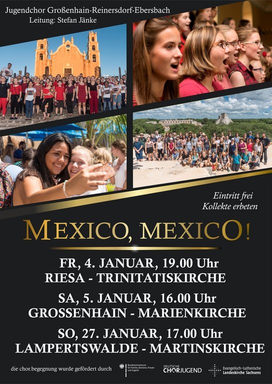 Nach 19 Tagen unterwegs sind wir pünktlich wieder daheim. Danke an das Bundesministerium für Familie, Senioren, Frauen und Jugend, dass es das Projekt über die Deutsche Chorjugend maßgeblich gefördert hat, ebenso danke an die ev.-luth. Landeskirche Sachsen für deren Unterstützung. In Mexico stellte uns das Bildungsministerium des Bundesstaates Quintana Roo einen Bus für die gesamte Reise - Herzlichen Dank!