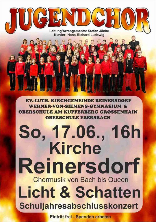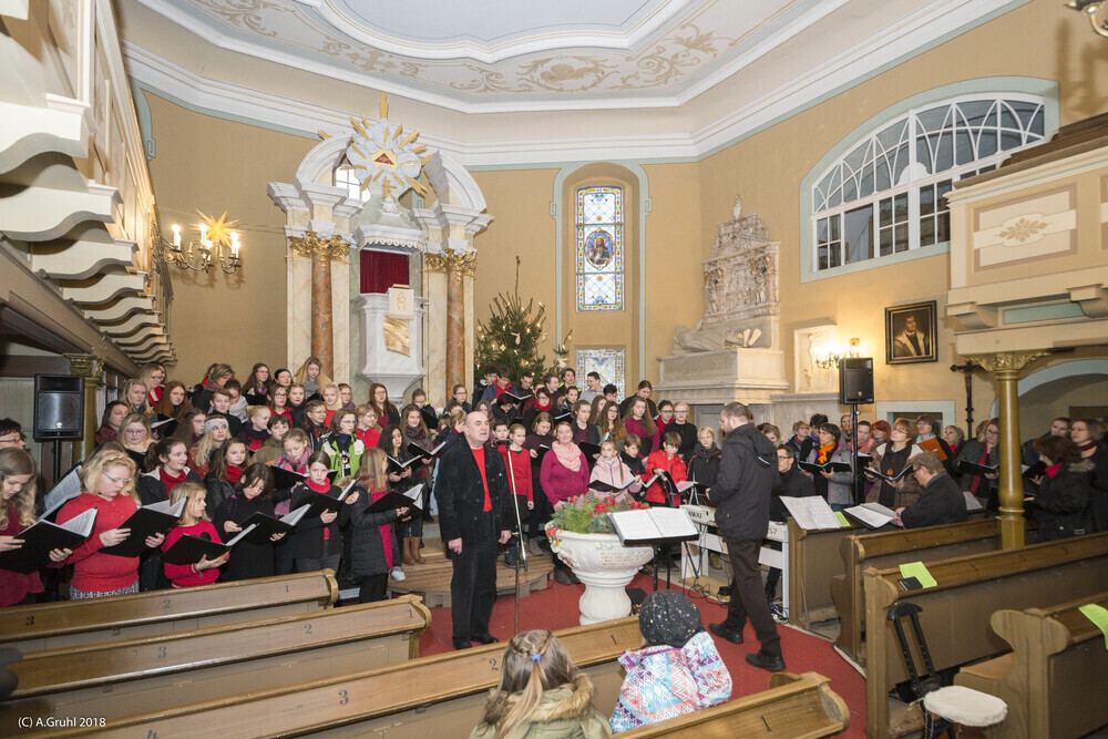 Unser letzter weihnachtlicher Auftritt war das traditionelle Konzert um den Dreikönigstag in unserer Heimatkirche in Reinersdorf. Gemeinsam mit der Kleinen Kurrende und dem erstmal mit einem eigenen Beitrag auftretenden Eltern-Lehrer-Ehemaligen-Chor des "Netzwerks Kinderchöre in der Großenhainer Pflege" waren wir 110 Mitwirkende und hatten 320 Gäste - in der Kirche waren nur noch wenige Plätze frei.