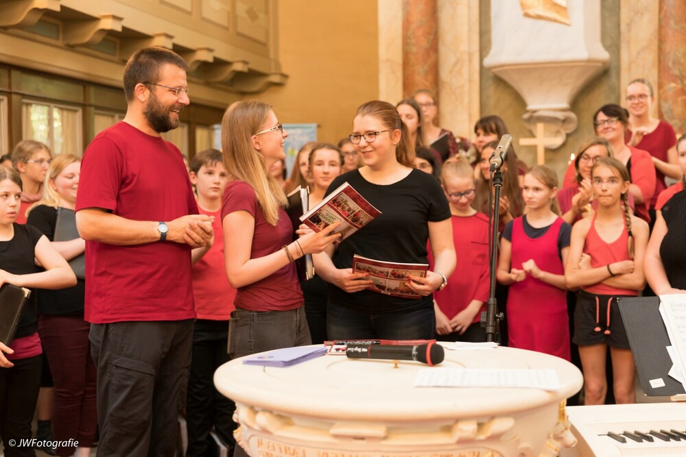 Unser Schuljahresabschlusskonzert! Dieses Jahr in Reinersdorf - inklusive zweimaligem Dank: a) In Form eines kleines Geschenks an alle SängerInnen, die in diesem Schuljahr besonders zuverlässig waren: Nelly und Nelly, Jonathan, Aurelia, Annika, Leonie, Tessa, Emma, Sarah, Helene, Luise, Gereon und Maria, b) in Form eines Chor-Fotobuches an Charlotte und Alexandra, deren Zeit im Chor nun nach dem Abitur zu Ende geht.