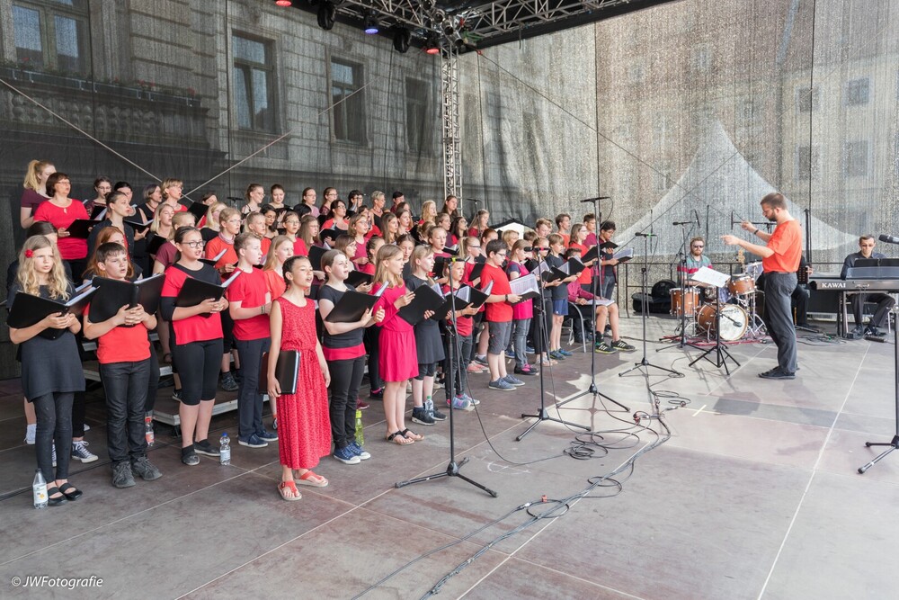 Stadtfestzeit bedeutet immer auch: Auftritte für Chöre. Wie schon beim letzten Stadtfest vor 2 Jahren sind wir für die große Bühne auf dem Hauptmarkt verpflichtet worden und haben dafür zum wiederholten Male eine Begleitband engagiert.