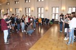 Sonntag, 28. April: 8 Uhr startete der Charterbus, der eine Delegation des Jugendchores nach Leipzig fährt: auf Einladung des Sächsischen Chorverbandes nehmen wir an einem mit allerlei Aktivitäten gefüllten workshop-Tag teil: Mitten in der City, in der Alten Börse, gleich hinter dem Neuen Rathaus.