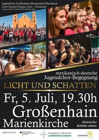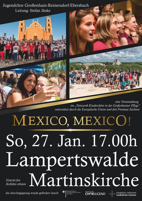 In der natürlich noch weihnachtlich geschmückten Riesaer Trinitatiskirche hatte unser Programm "Mexico, Mexico - ein Reisebericht mit weihnachtlichem Touch" Premiere (mit Unterstützung des Kulturraumes Oberes Elbtal/Sächsische Schweiz/Osterzgebirge". Die zweite Aufführung fand in der Großenhainer Marienkirche statt (eine Veranstaltung im "Netzwerk Kinderchöre in der Großenhainer Pflege").
