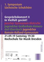Wir sind eingeladen: zum 25. Herbstchorsingen ins Bautzner Schillergymnasium (15.00 Uhr) gemeinsam mit zwei Bautzner Schulchören und zum 1. Symposium Sächsische Schulchöre nach Dresden (siehe Plakat).