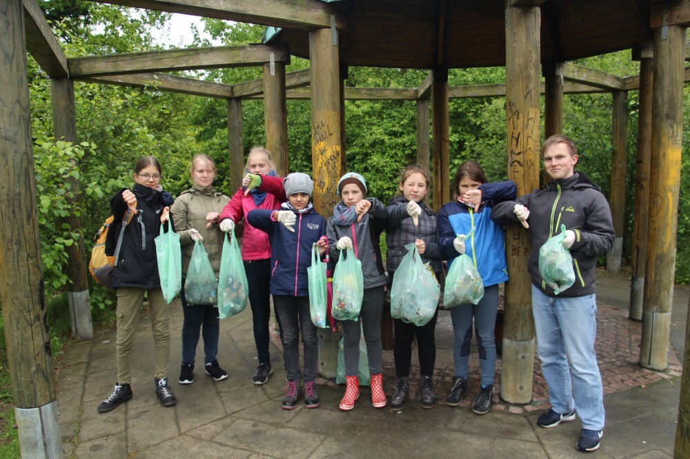 Statt fridays: mittwochs for future: Auf Initiative eines Chormitglieds machten sich einige SängerInnen unseres Chores, andere GymnasiastInnen und auch SchülerInnen der Chorklasse 4 der 1. Grundschule im Stadtpark daran, den von ignoranten Zeitgenossen an allen möglichen und unmöglichen Orten hinterlassenen Müll zu sammeln.