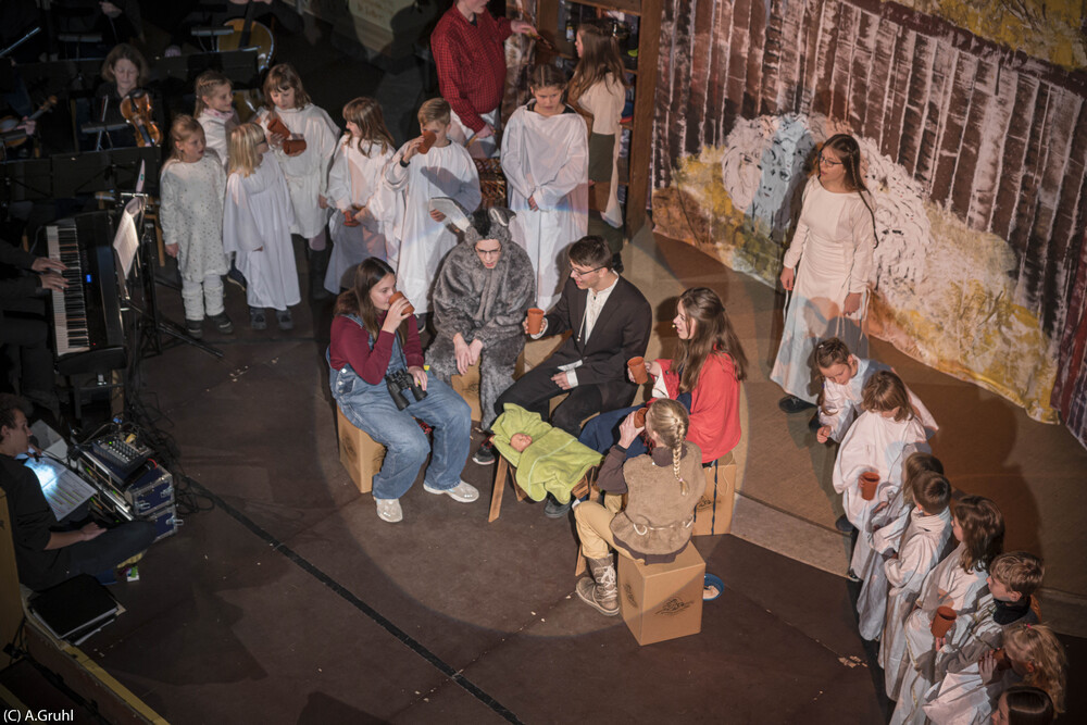Die dritte Weihnachtsmusical-Aufführung ist Geschichte. Mit 700 BesucherInnen am 22.12., 500 am Heiligen Abend und nun nochmal 300 am 29.12. konnten wir insgesamt 1500 Leute in unseren drei Konzerten begrüßen - das ist echt Wahnsinn! Herzlicher Dank gilt allen Mitwirkenden auf und hinter der Bühne, die das umfangreiche Projekt möglich gemacht haben: SchauspielerInnen, SängerInnen, MusikerInnen, Technikern, Bühnenbaumeister, Bühnenbild-Maler, Verpflegungs-Manager, Regieassistentin, Chauffeure...