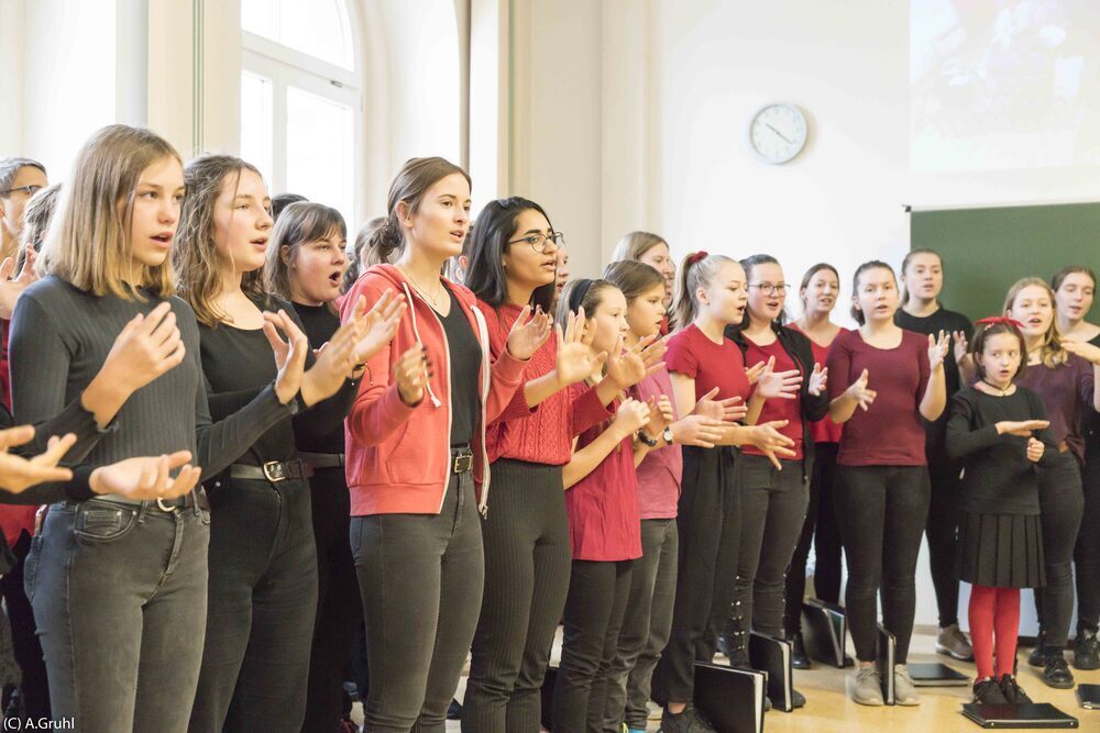 Wir durften jeweils mit zwei weiteren Chören konzertieren: im Bautzner Schiller-Gymnasium anlässlich des 25. Herbstchorsingens gemeinsam mit dem Chor des Schiller- und des Sorbischen Gymnasiums Bautzen, in Dresden dann im Rahmen des 1. Symposiums sächsische Schulchöre gemeinsam mit dem Jazzchor des Gymnasiums Dresden-Klotzsche und dem Chor des Dresdner Romain-Rolland-Gymnasiums.