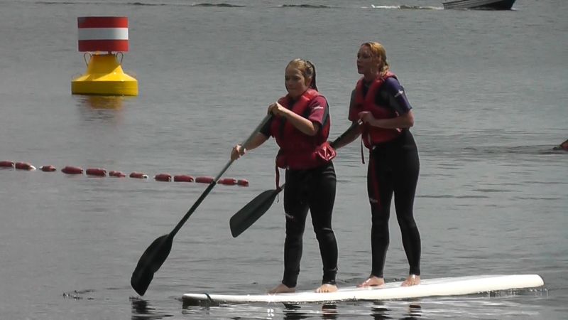 Dabei geht es natürlich nicht darum "Profisportler" auszubilden, sondern der Spaß an der Auseinandersetzung mit noch meist unbekannten Sportgeräten und damit oft eine völlig neue Herausforderung für jeden (was manchmal auch ein Stück Überwindung kostet). Schließlich ist es auch eine oft neue Erfahrung, dass man nicht nur beim abschließenden Wettkampf der Klassen sondern auch im großen Kanu nur gemeinsam zum erwünschten Ziel kommt.