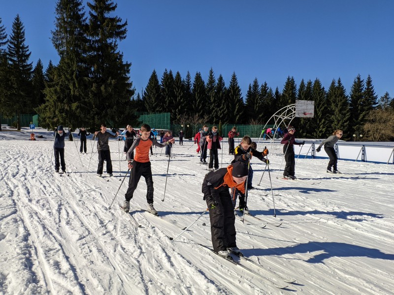 Seit 1998 findet (mit einigen Unterbrechungen) für die 7. Klassen alljährlich das Winterlager statt. In den letzten Jahren fuhren wir dazu nach Tschechien in das Riesengebirge, in den Sportpark Rabenberg im schönen Erzgebirge oder in die Alpen nach Oberammergau. In meist schneesicherer Umgebung werden an 5 Tagen erste Erfahrungen mit Langlaufski gemacht, aber auch schon Gelerntes unter Anleitung der Sportlehrer vertieft und gefestigt. Dabei spielt es keine Rolle ob absoluter Anfänger oder Fortgeschrittener, für jeden wird die richtige Ski-Gruppe gefunden - und der Spaß steht natürlich sowieso im Mittelpunkt des Ganzen.